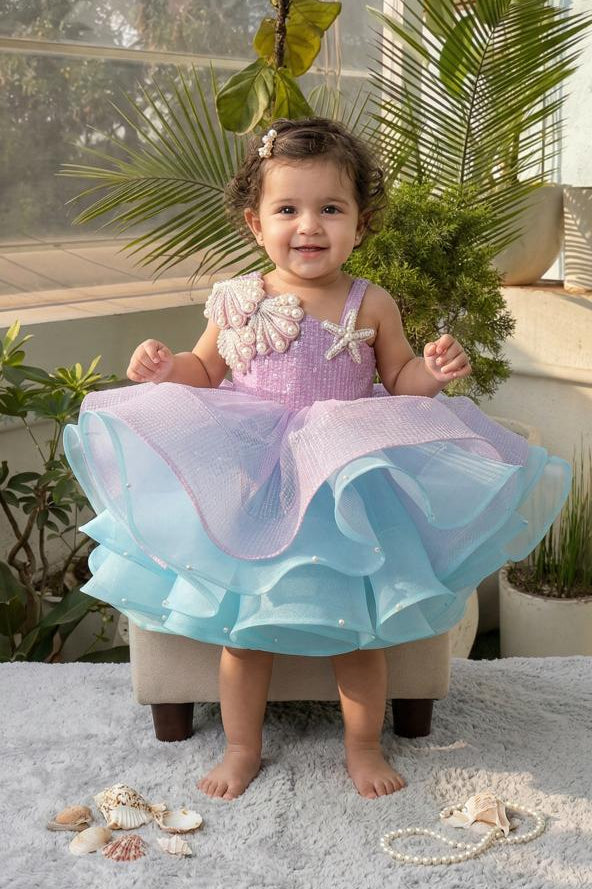 Make your little one shine with this show-stopping outfit, perfect for special occasions. Crafted with elegance and flair, this ensemble features a glamorous blend of sequins and organza, creating a voluminous peplum skirt in vibrant shades of pink. The eye-catching ribbon detailing and soft shimmer elevate the overall look.