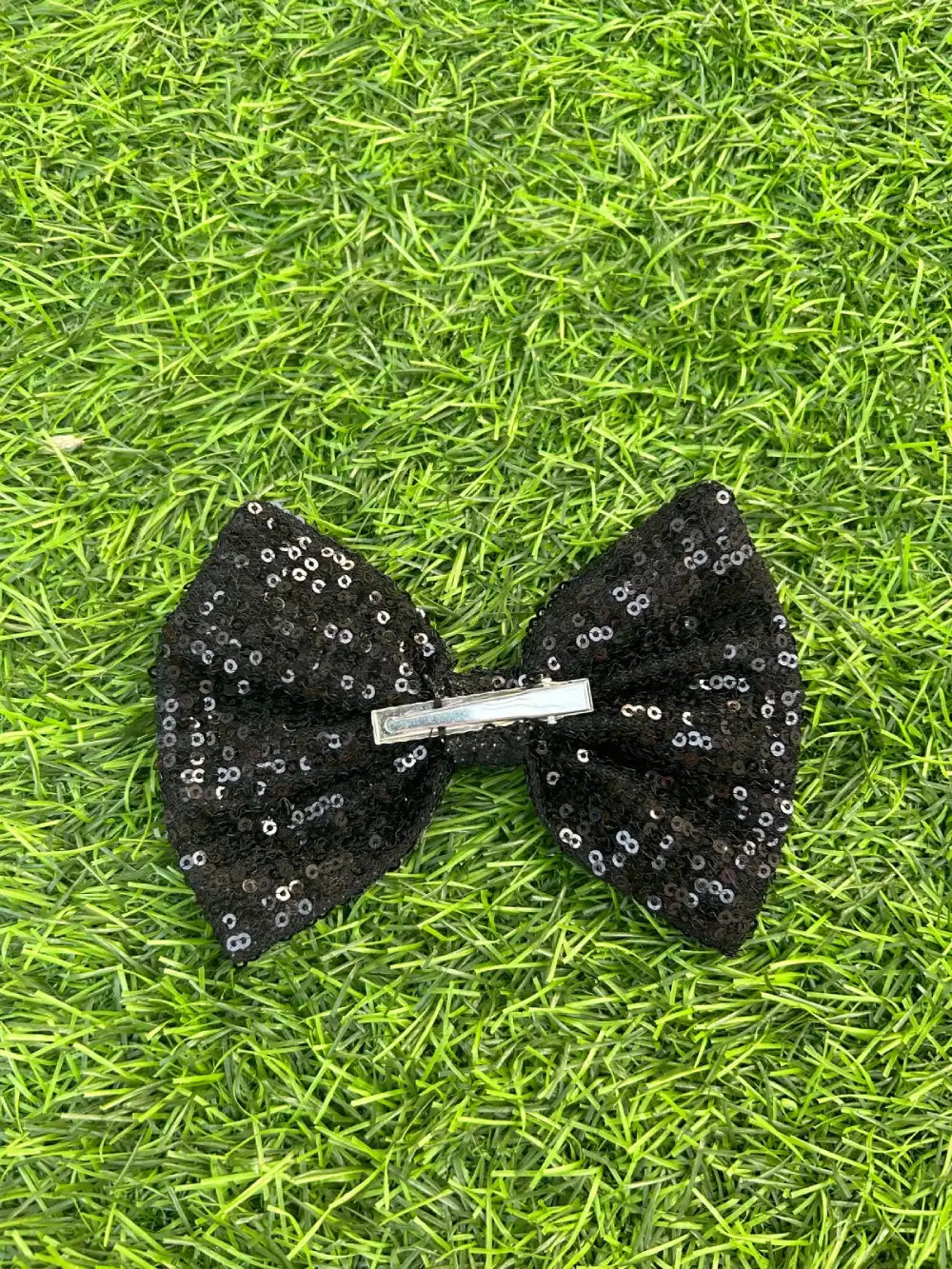 Shine bright with our Sequin Bow Clip, designed to elevate your hairstyle with a touch of glam. This stunning black bow is embellished with shimmering sequins, making it the perfect accessory for parties, evening events, or festive occasions. The secure clip backing ensures easy and comfortable wear all day or night.