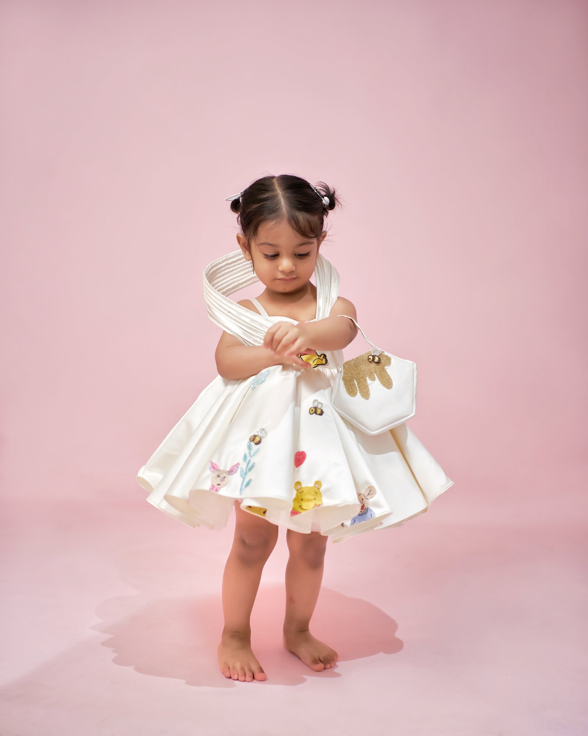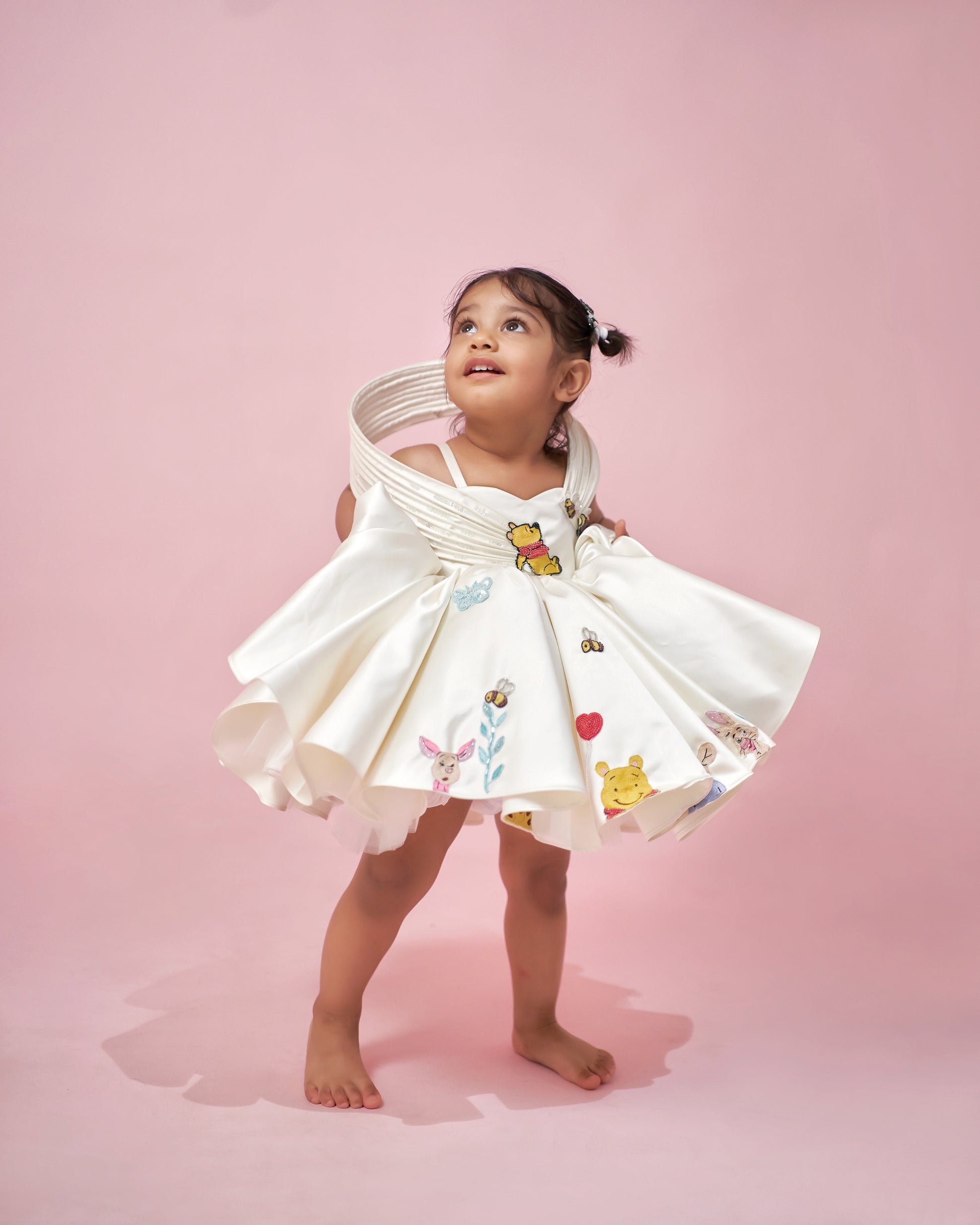 Experience elegance with WINNIE THE POOH, crafted from luxurious bridal satin that ensures a graceful silhouette. Featuring intricate wire details and hand-embroidered characters, this piece showcases exceptional craftsmanship that adds a unique, refined touch to your look. Perfect for those seeking both sophistication and artistic detail in their attire.